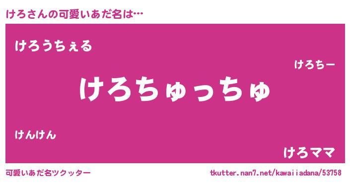 | 女子向けラノベタイトル風あだ名 | 『死神けろの再婚』『けろ伯爵の花嫁』 |