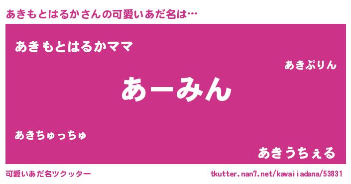 | 恥ずかしいあだ名 | 『あきちん』『アキモトハルカデラックス』 |