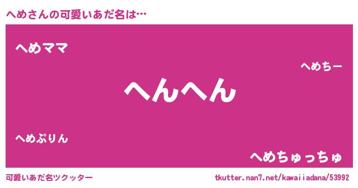 | 意味不明あだ名 | 『ペロリンへめ』『永久保存へめ』 |