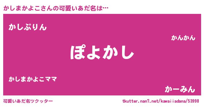 | ヘコむあだ名 | 『かしもー』『かしまかよこ(苦笑)』 |