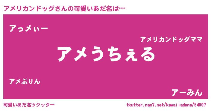 | 男性向けラノベタイトル風あだ名 | 『Re:アメリカンドッグから始める異世界生活』 |