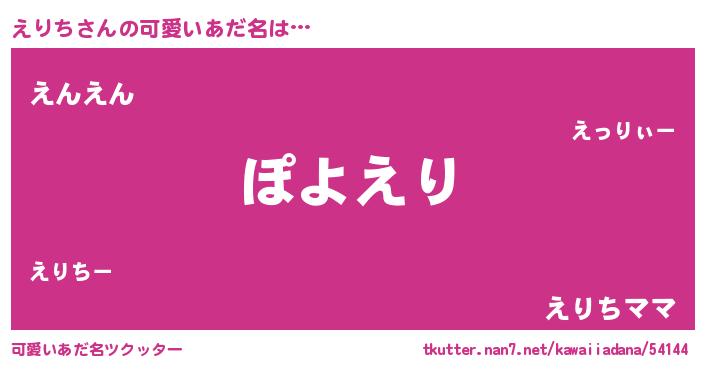 | 恥ずかしいあだ名 | 『プリティーえりち』『えりちん』 |