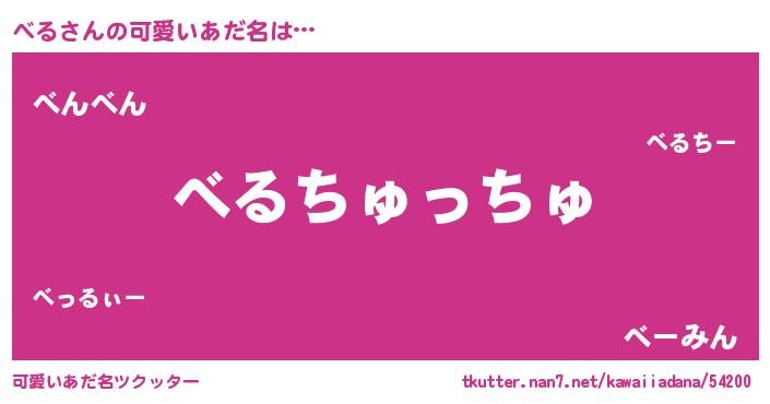 | 料理風あだ名 | 『べるのトマト煮』『べるの炊き込みご飯』 |
