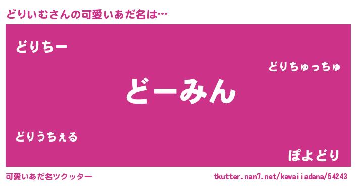 | 意味不明あだ名 | 『どりいむフォーエバー』『自称どりいむ』 |