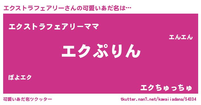 | 男性向けラノベタイトル風あだ名 | 『エクストラフェアリー~年齢イコール彼女いない歴の魔法使い~』 |