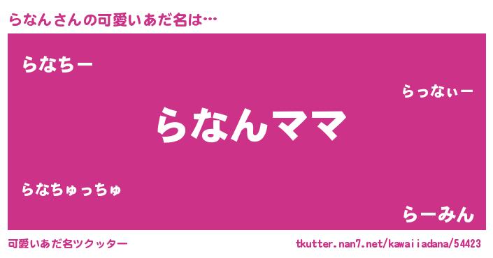 | ヘコむあだ名 | 『らなん(笑)』『酢こんぶ』『らなお』 |