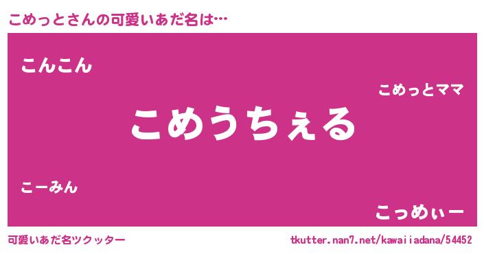 | 意味不明あだ名 | 『自称こめっと』『ペロリンこめっと』 |