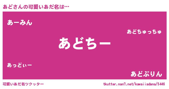 | 女子向けラノベタイトル風あだ名 | 『あどの雑貨屋さん』『死神あどの再婚』 |