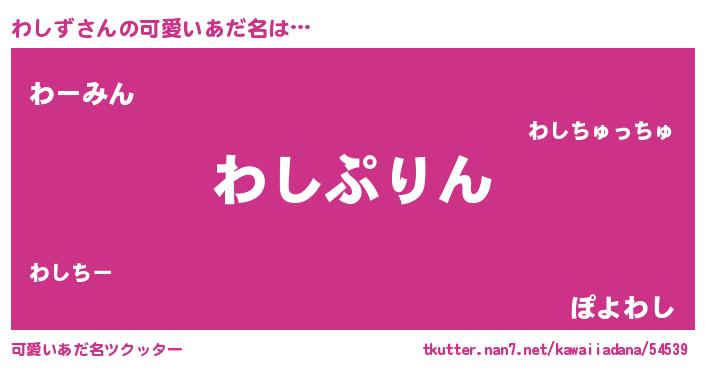 | 男性向けラノベタイトル風あだ名 | 『転生したらわしずだった件』 |