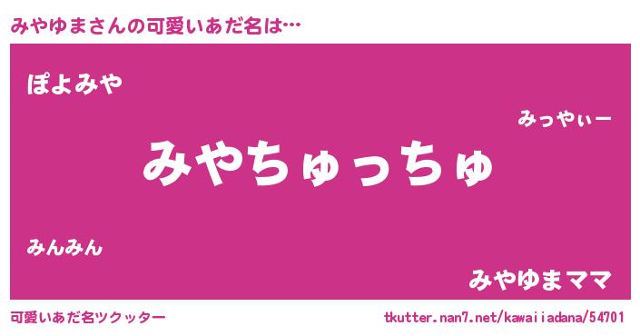 | ヘコむあだ名 | 『みやゆま(苦笑)』『みや太郎』 |