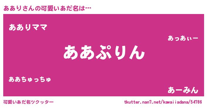 | 女子向けラノベタイトル風あだ名 | 『あありの玉の輿計画!』 |