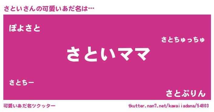 | 男性向けラノベタイトル風あだ名 | 『さといという概念が存在しない退屈な世界 』 |