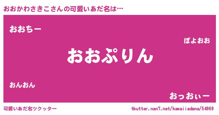 | 男性向けラノベタイトル風あだ名 | 『おおかわさきこ~年齢イコール彼女いない歴の魔法使い~』 |