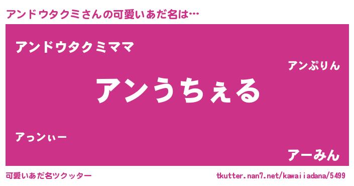 | 恥ずかしいあだ名 | 『アンドウタクミデラックス』『アンちん』 |