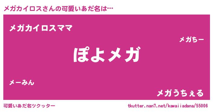 | 男性向けラノベタイトル風あだ名 | 『この素晴らしい世界にメガカイロスを!』 |