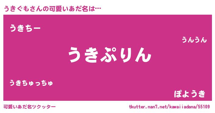 | 恥ずかしいあだ名 | 『うきっちょ』『プリティーうきぐも』 |