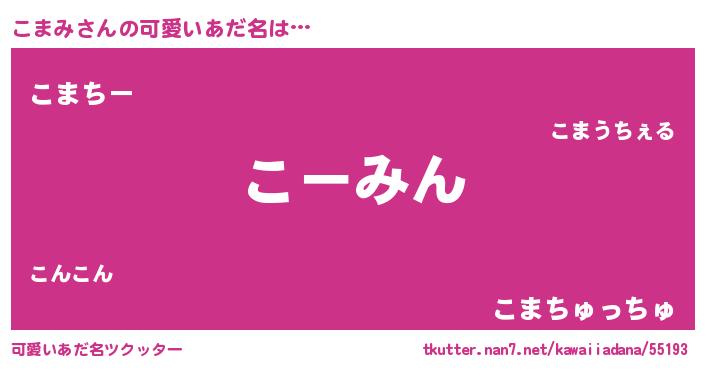 | 意味不明あだ名 | 『こまみフォーエバー』『自称こまみ』 |
