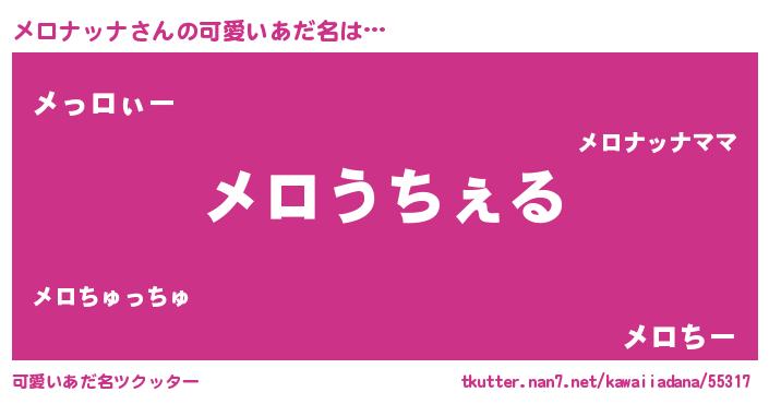 | 男性向けラノベタイトル風あだ名 | 『Re:メロナッナから始める異世界生活』 |