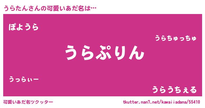 | 料理風あだ名 | 『うらたんごはん』『うらたんのトマト煮』 |