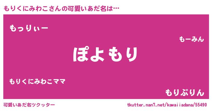 | ヘコむあだ名 | 『もりっ子』『もりくにみわこ(爆)』 |