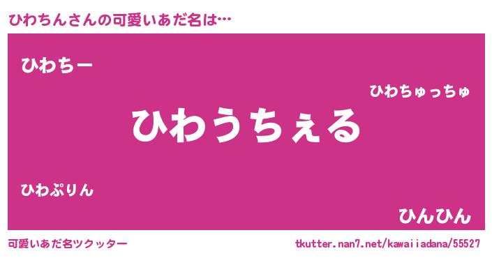 | ファンタジー風あだ名 | 『ゼヒワトゥ』『エターナルヒワチンー』 |