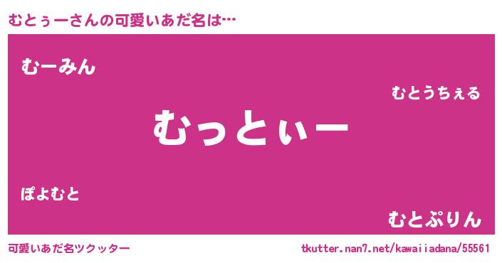 | 女子向けラノベタイトル風あだ名 | 『むとぅーの卵を拾いまして』 |