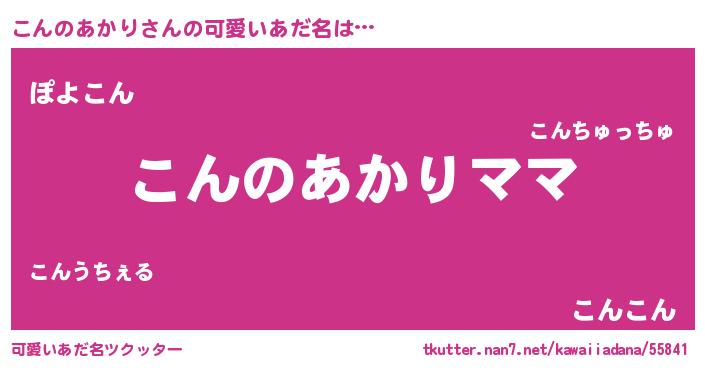 | 意味不明あだ名 | 『永久保存こんのあかり』 |