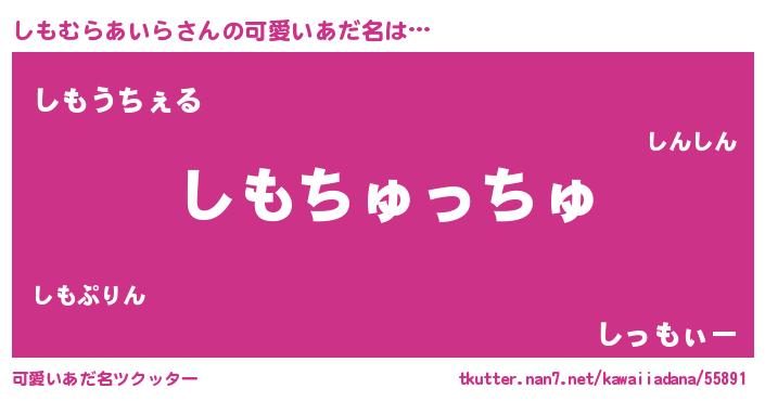 | ヒーロー風カッコイイあだ名 | 『慈愛の使者しもむらあいら』 |