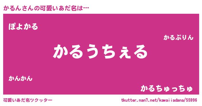 | 男性向けラノベタイトル風あだ名 | 『Re:かるんから始める異世界生活』 |