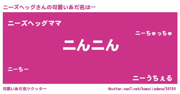 | 恥ずかしいあだ名 | 『プリティーニーズヘッグ』『ニーちん』 |