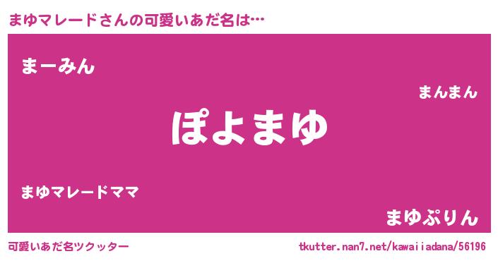 | ヘコむあだ名 | 『まゆもー』『まゆマレード(爆)』 |