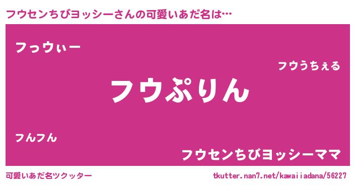 | ポケモン風あだ名 | 『フウキング』『ヒフウセンチビヨッシー』 |