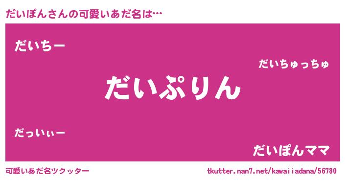 | 男性向けラノベタイトル風あだ名 | 『だいぽん~年齢イコール彼女いない歴の魔法使い~』 |