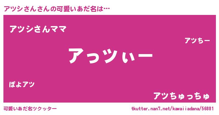 | 女子向けラノベタイトル風あだ名 | 『アツシさんの卵を拾いまして』 |