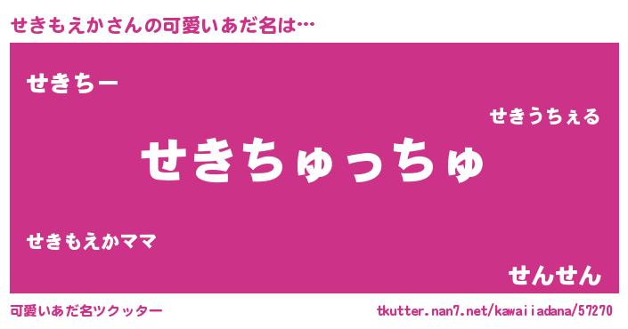 | 意味不明あだ名 | 『眠気覚ましガムせきもえか味』 |