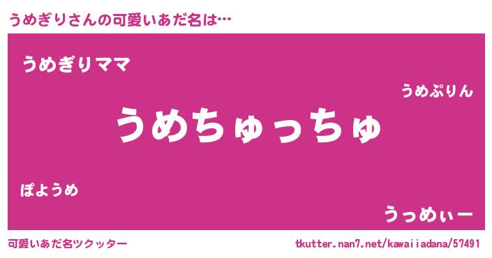 | ヘコむあだ名 | 『うめぎり(爆)』『うめっ子』 |