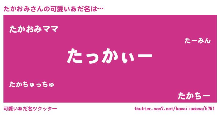 | 女子向けラノベタイトル風あだ名 | 『たかおみの卵を拾いまして』 |