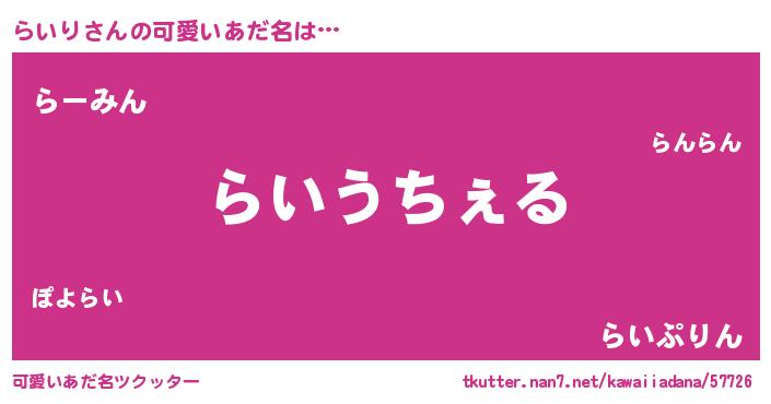 | 恥ずかしいあだ名 | 『ライリデラックス』『プリティーらいり』 |