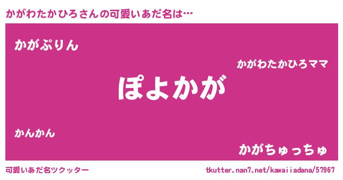 | ヘコむあだ名 | 『かがわたかひろ(苦笑)』『かがふぇ~』 |