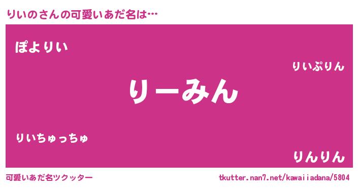 | ヘコむあだ名 | 『りいっふぃ~』『りいっちょ』 |