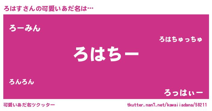 | ヘコむあだ名 | 『つくし』『ろはぷりん』 |