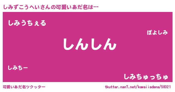 | 恥ずかしいあだ名 | 『プリティーしみずこうへい』『しみちん』 |