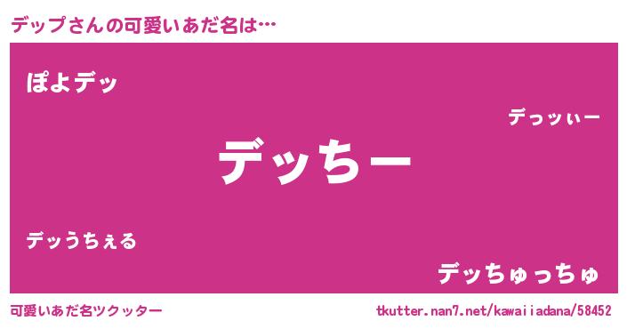 | 男性向けラノベタイトル風あだ名 | 『やはりデップの青春ラブコメはまちがっている 』 |