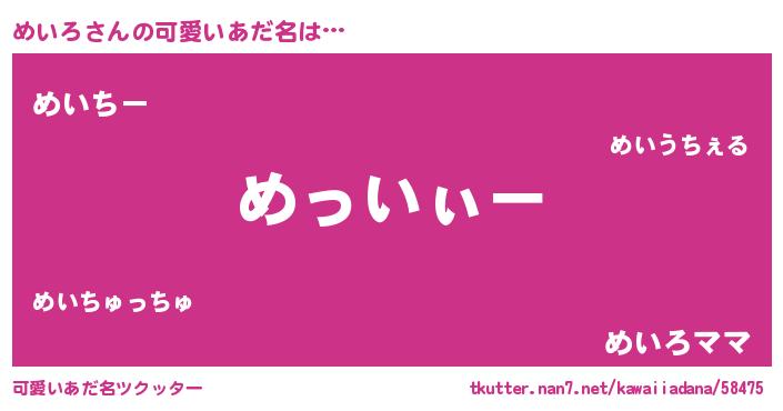 | ポケモン風あだ名 | 『メイゴンZ』『ヒメイロ』『ゼニメイ』 |