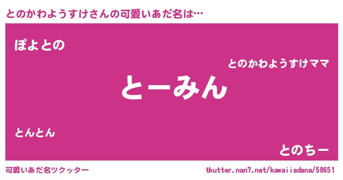 | 男性向けラノベタイトル風あだ名 | 『うちのとのかわようすけが世界を掌握している!』 |