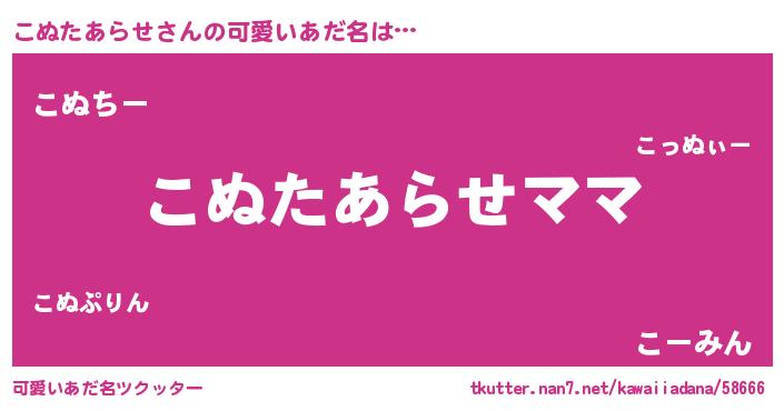 | 意味不明あだ名 | 『永久保存こぬたあらせ』 |