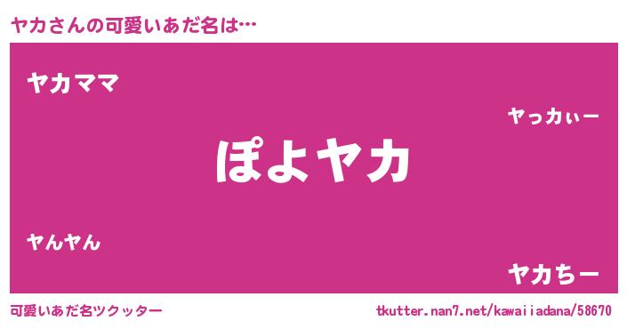 | ヘコむあだ名 | 『ヤカ(笑)』『なまこ酢』『ヤカっ子』 |