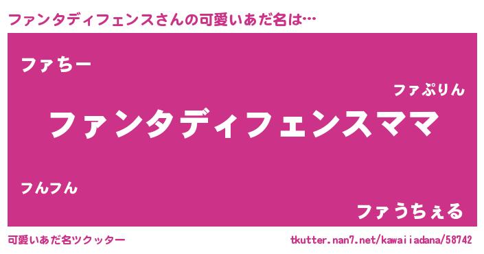 | 男性向けラノベタイトル風あだ名 | 『ファンタディフェンスという概念が存在しない退屈な世界 』 |