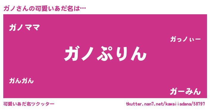 | 男性向けラノベタイトル風あだ名 | 『転生したらガノだった件』『緋弾のガノ』 |