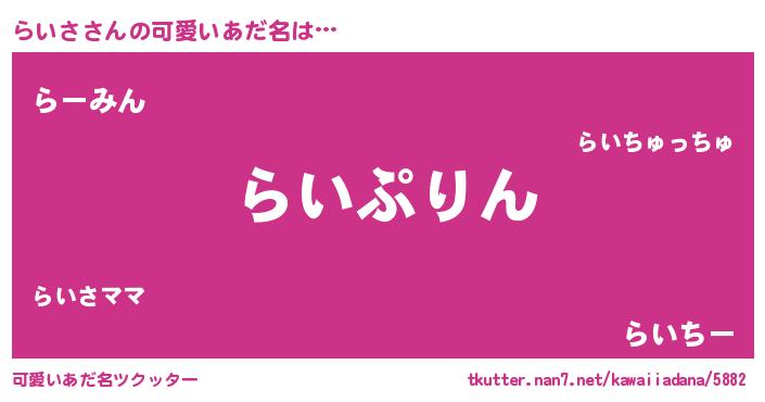 | ヘコむあだ名 | 『豆乳』『らいさ(笑)』『らいにゅー』 |
